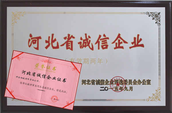 Xingtai Steel was awarded the Credit Enterprise of Hebei Province.