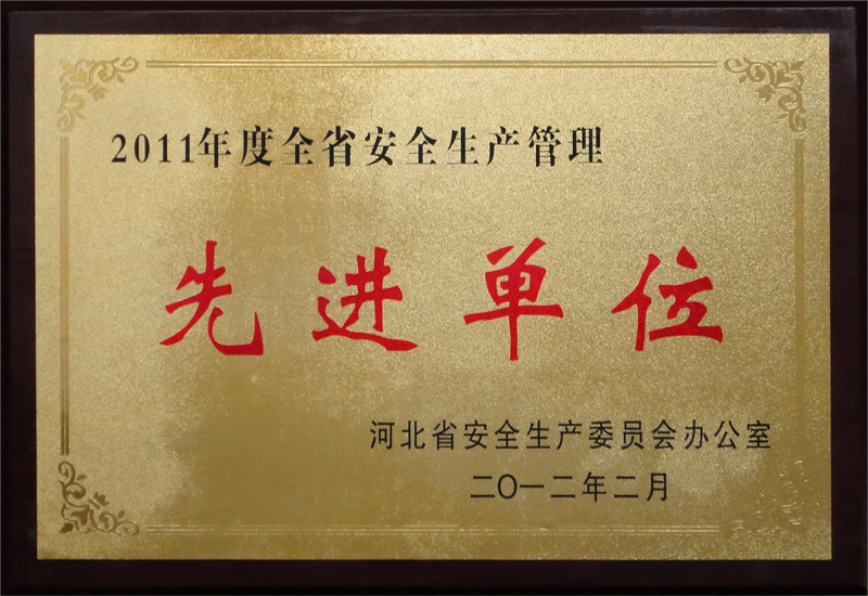 Xingtai Steel was awarded the Efficiency Supervision Advanced Unit of 2011which issued by Committee for Disciplinary Inspection of HBSA and the Office in HBSA of the Ombudsman of The Department of supervision of Hebei Province