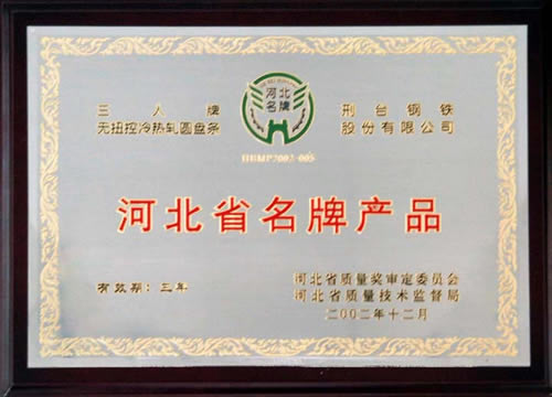 三人牌無扭控冷熱軋圓盤條獲河北省名牌產品