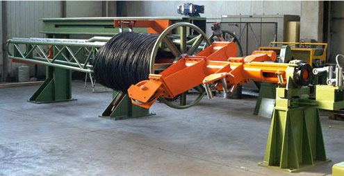 1、推進裝置將盤條推進至工作位置,經(jīng)放線機后進入到同步裝置,同步裝置的滑輪可以累積大約2米的盤條,用于在萬一發(fā)生纏繞時停止生產(chǎn)線。