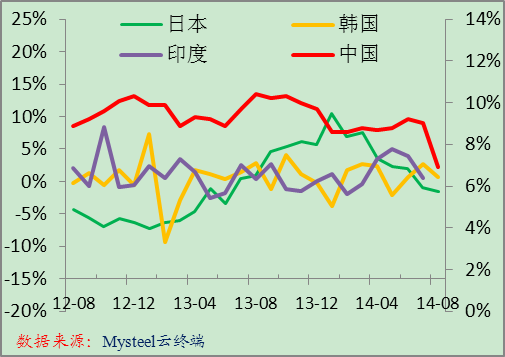 整體上判斷,短期內(nèi)亞洲經(jīng)濟(jì)將持續(xù)低迷,鋼材需求增長乏力。
