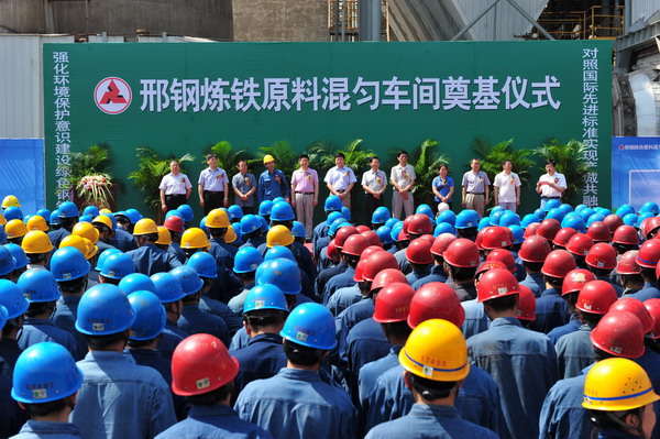6月9日上午,邢鋼在煉鐵廠原料混勻車間舉行了全封閉式料場奠基儀式。邢鋼公司領(lǐng)導(dǎo)及施工、設(shè)計、監(jiān)理單位的有關(guān)負責人和部分員工參加了奠基儀式。