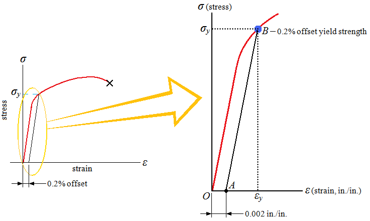 常用的金屬一般為多晶體金屬,因此工程實際金屬起始塑性變形具有非同時性特征。在拉伸曲線上具體反映就是沒有明顯的屈服點。那么,如何界定工程實際金屬發(fā)生了塑性變形呢?殘留塑性變形量就成為重要的依據(jù),人們通常人為地把一定殘留塑性變形量時工程金屬對應的抗力作為屈服強度,也稱為條件屈服強度。這很好理解,沒有明顯的塑性屈服點,就沒有明顯的屈服強度,要想知道實際金屬的屈服強度就需要一個判定條件,因此就有了條件屈服強度。對于不同的金屬構(gòu)件,其條件屈服強度對應的殘留變形量不同。對于一些苛刻的金屬構(gòu)件,其殘留變形量規(guī)定應較小,而普通金屬構(gòu)件條件屈服時對應的殘留變形量則較大。常用的殘留變形量為0.01%,0.05%, 0.1%,0.2%,0.5%和1.0%等。