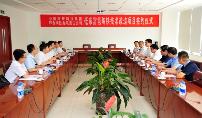 CISRI and Xingtai Steel hold Signing ceremony for renovation project of ironmaking technology with low carbon and high hydrogen at 207 meeting room in office building of Xingtai Steel at 10:58 on May 20, 2018.