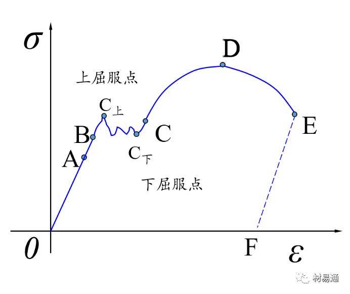 以低碳鋼的拉伸應(yīng)力—應(yīng)變曲線為例。