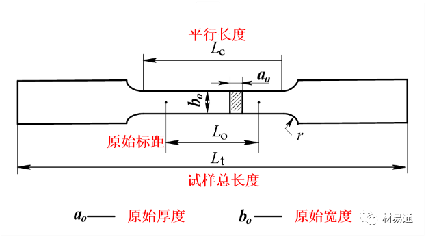 平行長度(Lc):試樣兩頭部或兩夾持部分(不帶頭試樣)之間平行部分的長度。