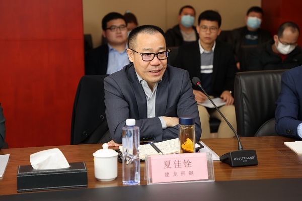 建龍集團(tuán)副總裁夏佳銓對永年地區(qū)客戶長期以來給予邢鋼的支持表示感謝,向客戶介紹了建龍集團(tuán)“雙五千萬噸”的發(fā)展目標(biāo),做強(qiáng)高端工業(yè)用材的的發(fā)展思路,以及實現(xiàn)“四個轉(zhuǎn)型”的發(fā)展方向。指出:“建龍集團(tuán)對邢鋼的未來發(fā)展充滿信心,將從各方面進(jìn)行全面支持,邢鋼高質(zhì)量的冷鐓鋼產(chǎn)品今后將充分滿足永年客戶的需求,并實現(xiàn)與客戶的雙贏和共同成長”。對客戶提出的交貨期問題、質(zhì)量問題,要求邢鋼銷售部門與研發(fā)部門、生產(chǎn)部門加強(qiáng)聯(lián)動,快速反應(yīng),提升客戶的滿意度,重塑邢鋼形象。