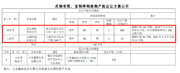 按照《國務(wù)院關(guān)于化解產(chǎn)能嚴(yán)重過剩矛盾的指導(dǎo)意見》、《國務(wù)院關(guān)于鋼鐵行業(yè)化解過剩產(chǎn)能實(shí)現(xiàn)脫困發(fā)展的意見》和《鋼鐵行業(yè)產(chǎn)能置換實(shí)施辦法》要求,經(jīng)國務(wù)院國資委復(fù)函同意,擬將武鋼有限轉(zhuǎn)爐產(chǎn)能以及寶鋼特鋼電爐產(chǎn)能出讓。現(xiàn)將武鋼有限1座90噸轉(zhuǎn)爐102萬噸煉鋼產(chǎn)能、寶鋼特鋼1座60噸電爐14萬噸煉鋼產(chǎn)能出讓方案予以公示,公示期為2022年5月25日-6月22日,歡迎社會(huì)公眾進(jìn)行監(jiān)督。