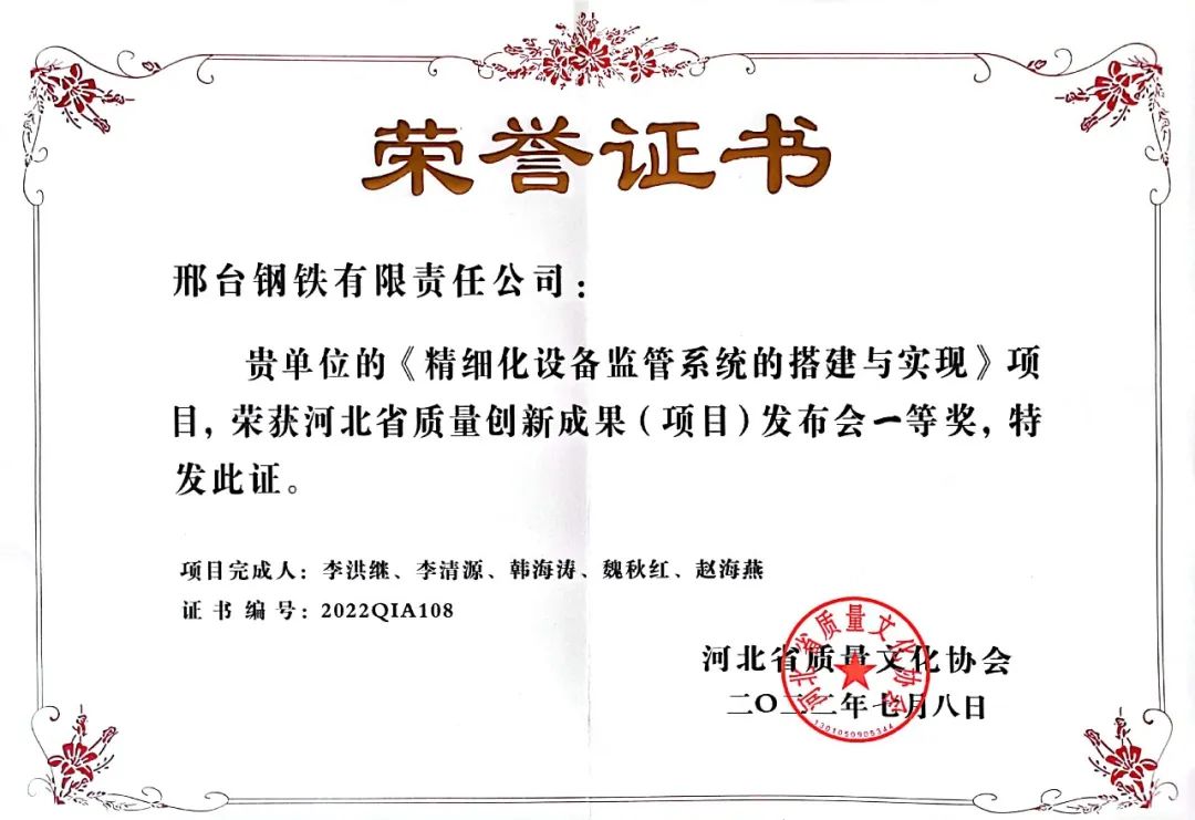 針對設備分散廣、人工點檢效率低、服務品質難以保障的客觀實際,動力廠技術創(chuàng)新團隊,研發(fā)精細化設備監(jiān)管平臺。通過調研,他們先將現(xiàn)場各自動控制系統(tǒng)中需要集中監(jiān)控的參數(shù)內部地址進行匯總,然后,再通過計算機網(wǎng)絡、編程技術手段,將相關工作信息網(wǎng)頁化發(fā)布到各辦公電腦的網(wǎng)絡終端,從而實現(xiàn)各辦公室的現(xiàn)場自動控制畫面監(jiān)管,充分發(fā)揮了平臺系統(tǒng)的遠程監(jiān)控、遠程指導、快速解決問題的功用,保障了動力介質的穩(wěn)定供應。同年,團隊完成的《精細化設備監(jiān)管系統(tǒng)的搭建與實現(xiàn)》課題成果,獲2022年度河北省質量創(chuàng)新成果大賽一等獎,并入圍中國質量創(chuàng)新與質量改進成果發(fā)表交流活動。