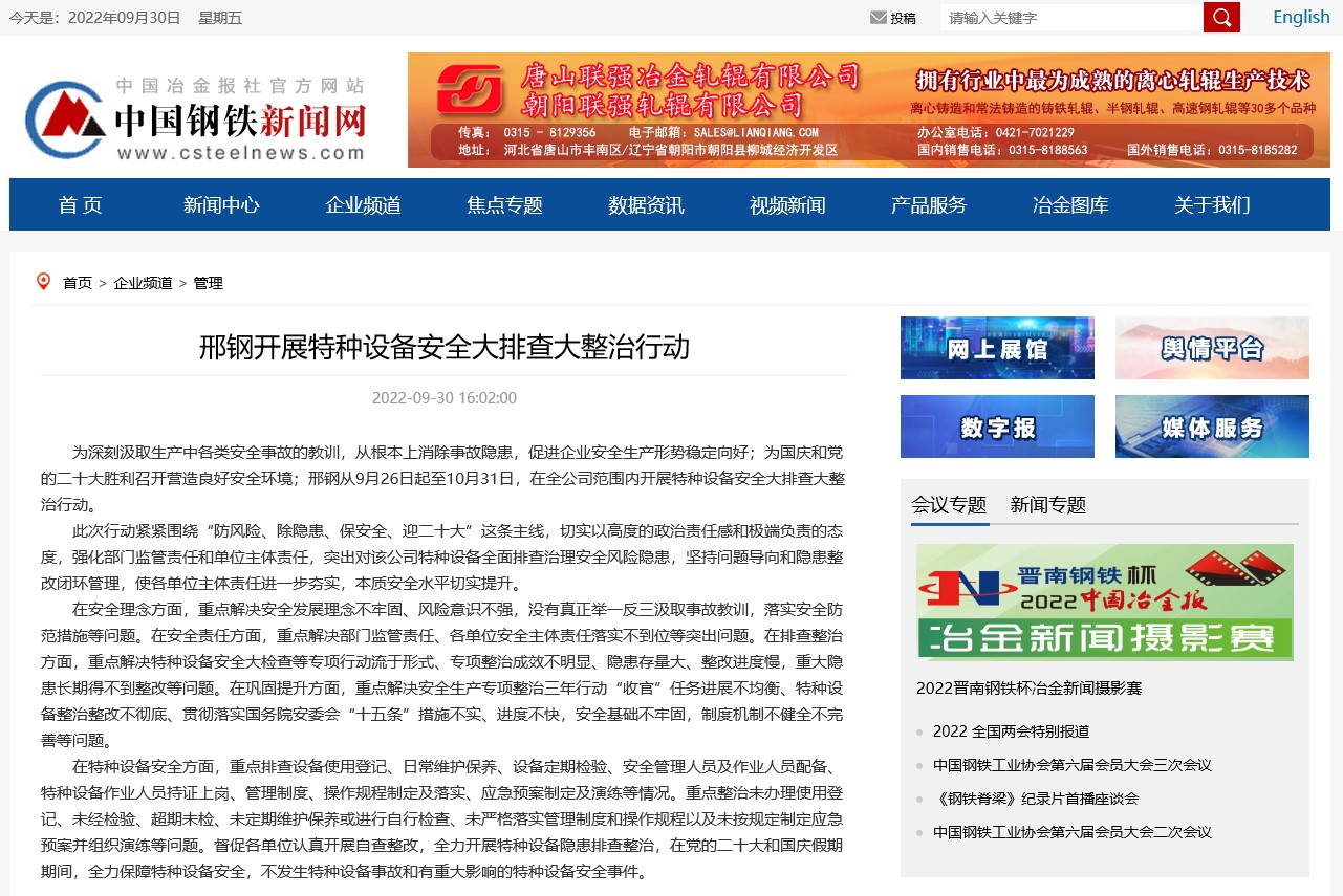 為深刻汲取生產(chǎn)中各類安全事故的教訓(xùn),從根本上消除事故隱患,促進(jìn)企業(yè)安全生產(chǎn)形勢(shì)穩(wěn)定向好;為國慶和黨的二十大勝利召開營造良好安全環(huán)境;邢鋼從9月26日起至10月31日,在全公司范圍內(nèi)開展特種設(shè)備安全大排查大整治行動(dòng)。