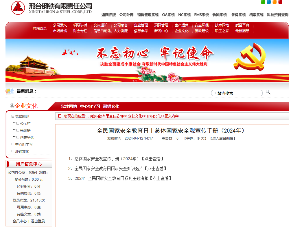 邢鋼開展“全民國(guó)家安全教育日”活動(dòng)