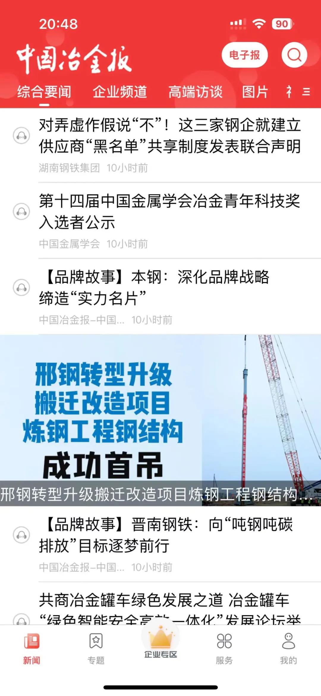 【媒體報道】中國冶金報“頭版主圖”報道邢鋼轉型升級項目進展