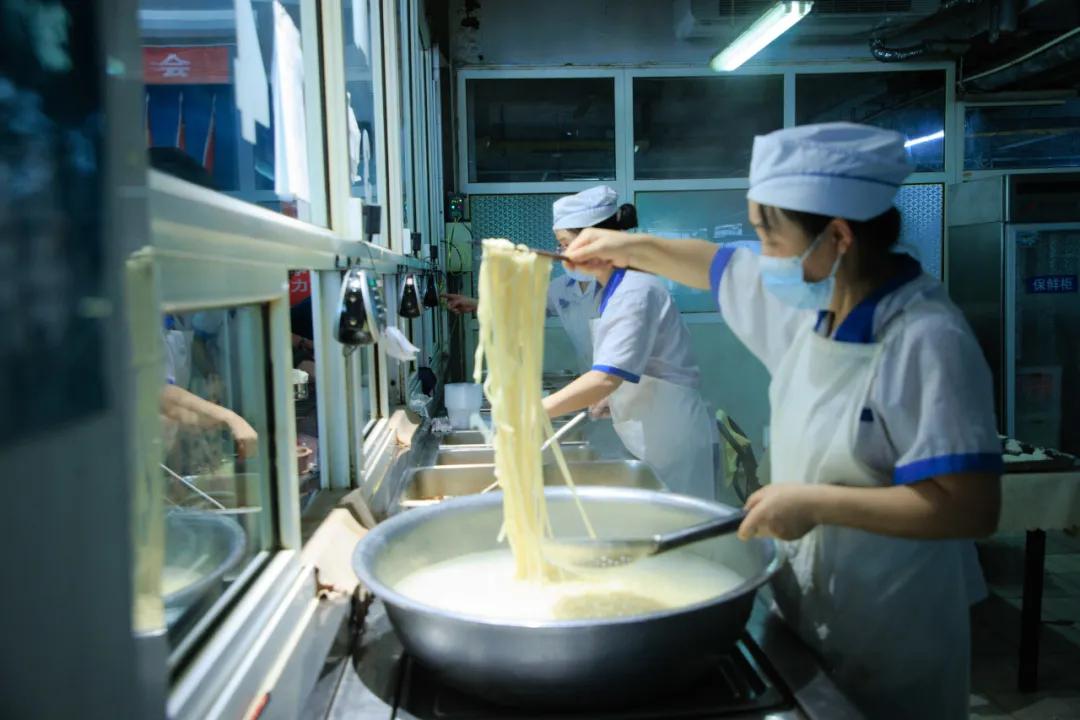 經(jīng)濟實惠。食堂以低于成本的價格向職工提供三餐,午餐中三肉兩素5元能吃飽吃好,鹵雞腿4元1個,獅子頭2元1個,黃燜雞塊、紅燒帶魚等5元1份,面條/饸饹面2.5元1份;早餐、晚餐2元能吃飽吃好,雞蛋0.5元1個,手抓餅1元1個,雞蛋灌餅含1雞蛋1.5元1個,肉夾饃3元1個。