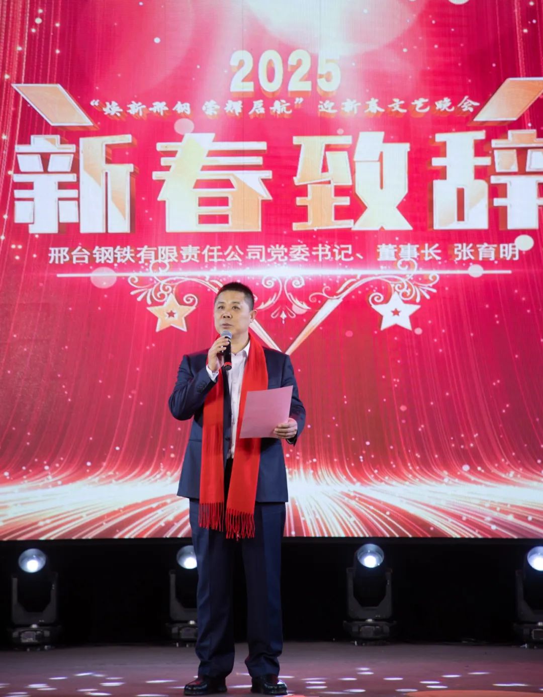歲序更替,華章日新。1月22日,以“煥新邢鋼,榮耀啟航”為主題的邢鋼2025年新春聯(lián)歡會在公司會議中心炫彩啟帷。公司黨委書記、董事長張育明攜公司全體中高層領(lǐng)導(dǎo)與2024年受表彰的先進個人、員工代表歡聚一堂,喜迎乙巳年新春。