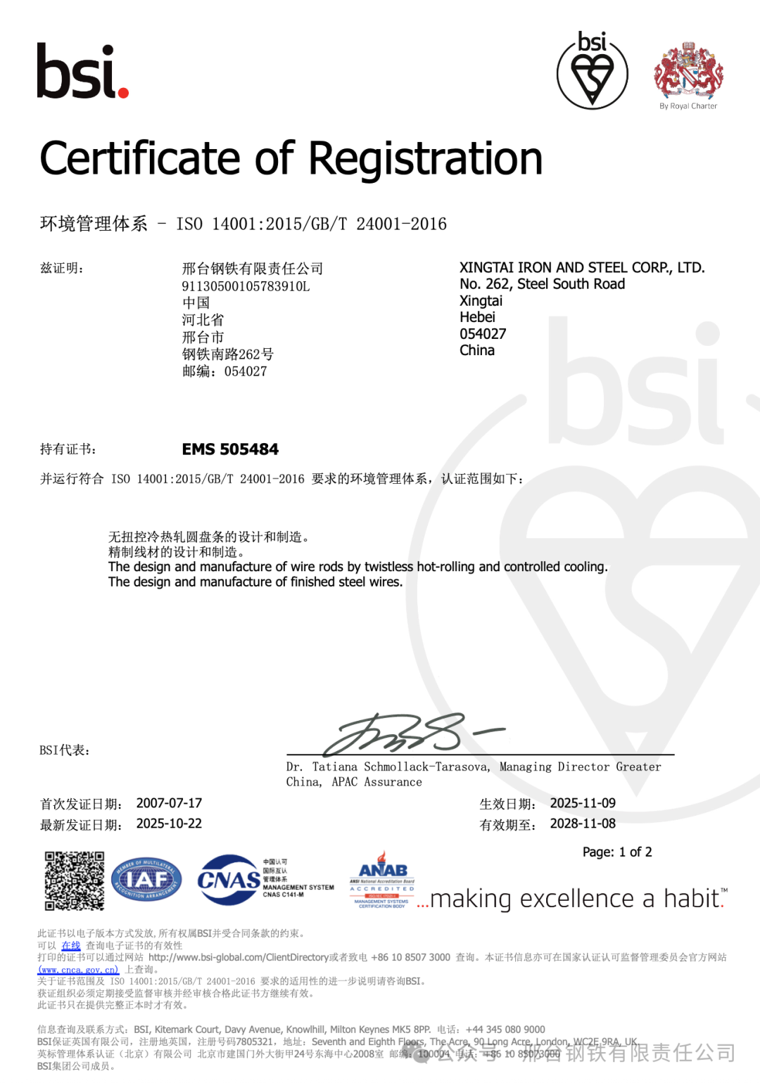 近日,邢臺鋼鐵有限責任公司(簡稱“邢鋼”)順利通過英國標準協(xié)會(BSI)對其職業(yè)健康安全管理體系與環(huán)境管理體系的再認證審核,取得新版證書。該公司自2007年首次通過該體系認證以來,已連續(xù)十八年保持體系持續(xù)有效運行,體現(xiàn)出在安全與環(huán)境管理方面長期穩(wěn)定的合規(guī)能力和管理韌性。