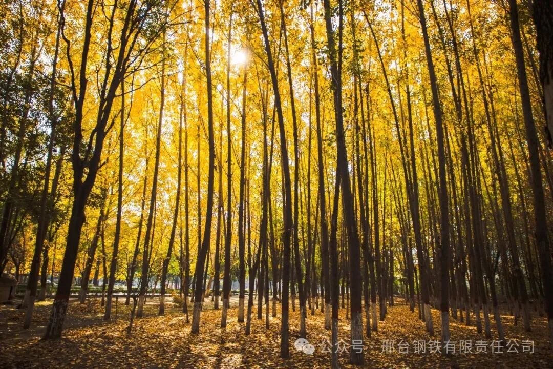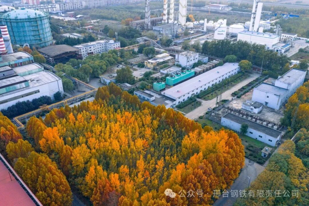 多年來(lái),邢鋼秉持“綠水青山就是金山銀山”理念,持續(xù)加大環(huán)保投入,大力推進(jìn)節(jié)能減排、與城市融合發(fā)展,廠區(qū)成為詩(shī)與畫(huà)的最美園林。這片絢爛的秋色,就是邢鋼綠色發(fā)展的一張名片。