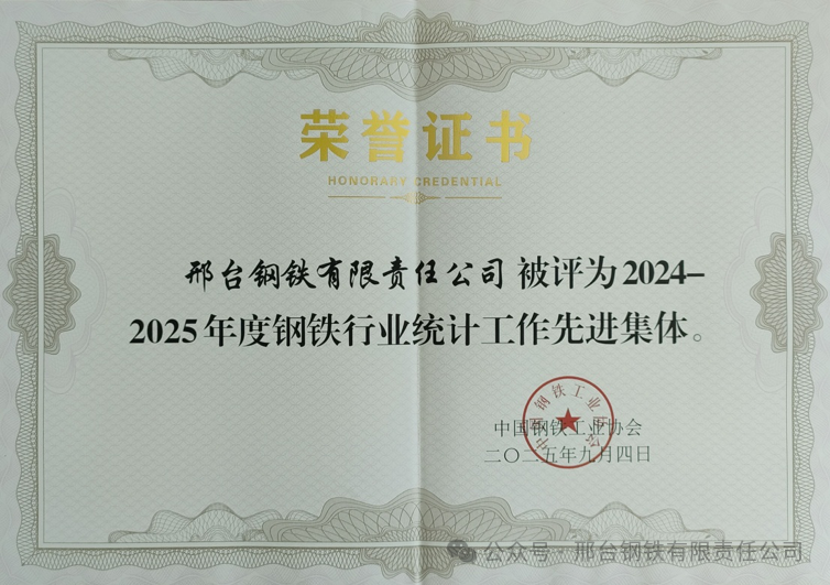 The China Iron and Steel Association stated that statistical work in the iron and steel industry is an important foundation for reflecting operational conditions, supporting policy formulation and promoting the healthy development of the industry. Xingtai Steel's award this time not only demonstrates the advanced nature and reliability of the company's statistical management system but also sets a good example for peers in building statistical capabilities during digital transformation.