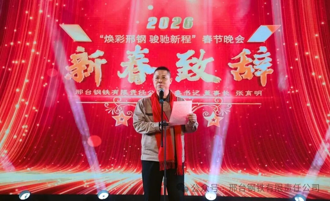 新征程,新目標(biāo),新跨越。2月6日,公司在會議中心舉辦“煥彩邢鋼,駿馳新程”2026年新春聯(lián)歡會。公司黨委書記、董事長張育明攜公司全體中高層領(lǐng)導(dǎo)與2025年受表彰的先進個人、員工代表歡聚一堂,共話邢鋼大業(yè),喜迎丙午年新春。
